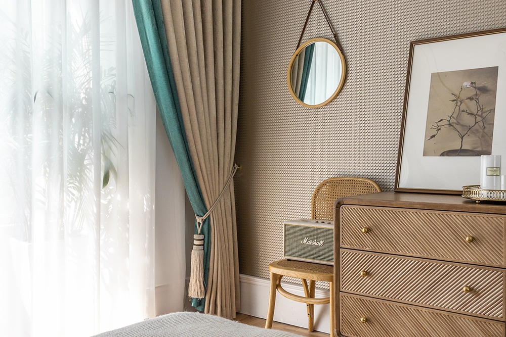 設(shè)計理念:泊遠(yuǎn)溫柔的豆汁黃,鮮活生動的薄荷綠,大自然的覺醒配色。在這套配色下整個臥室都浸潤著在醇厚的溫暖里,一份溫文爾雅的傾訴,一份屬于你的詩和遠(yuǎn)方。