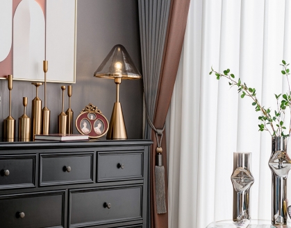 設計理念:高級灰的書房看起來大氣謙和,南瓜色的加入倍添了時尚氣息,整體墻面和軟裝交相輝映,使整體空間都充滿了穩(wěn)重的復古感,碳黑儲物柜上擺放著金屬色的臺燈和裝飾更是給空間注入輕奢意味。